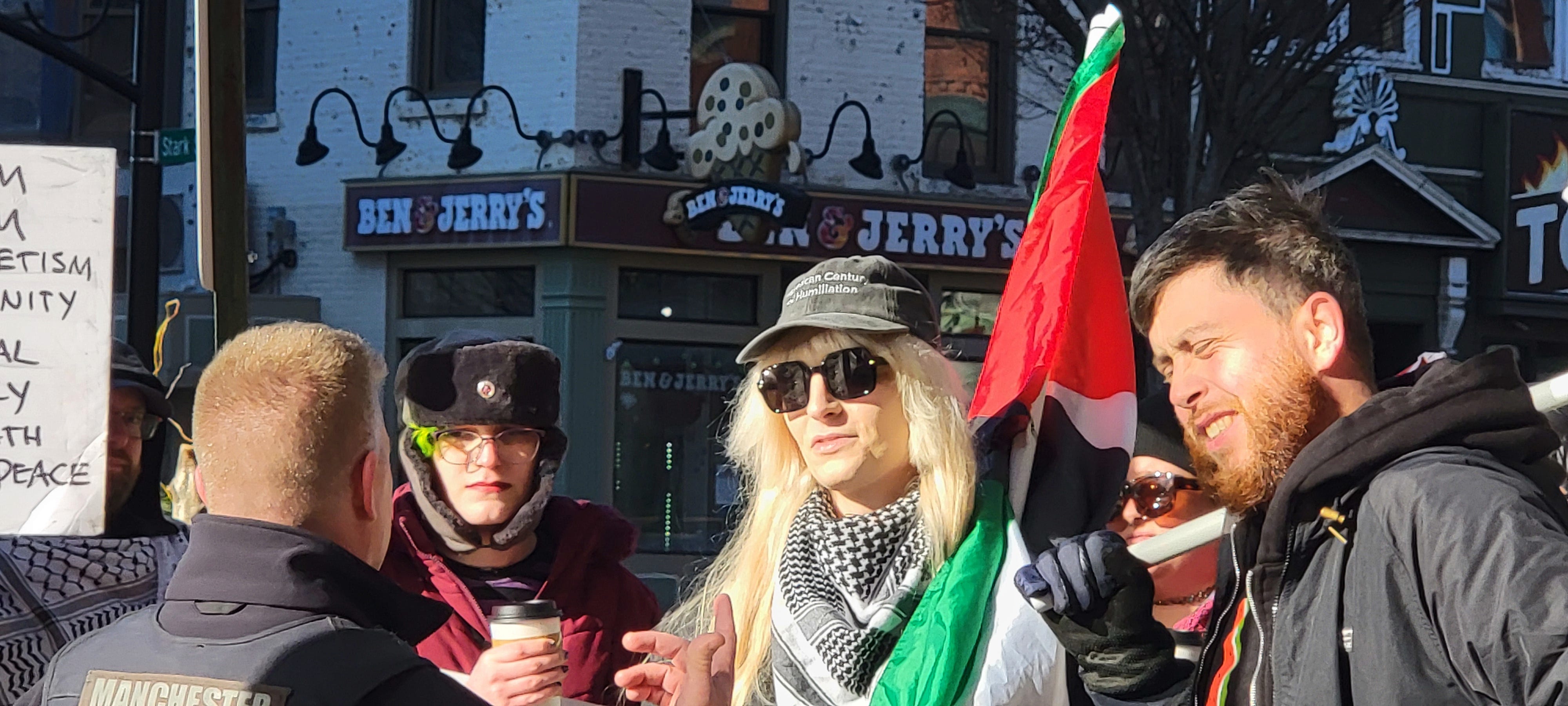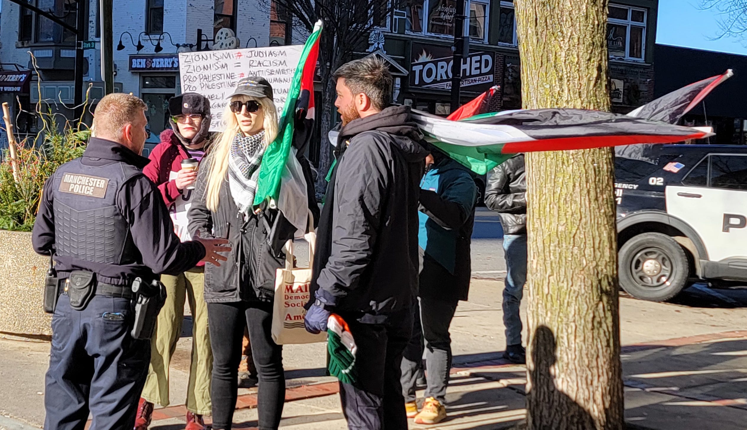 As for the protest, it was attended by eight people, if you can call them that. There were also two of Manchester’s finest present, who had obviously instructed them to gather in a tight group, maximally far from the entrance on the sidewalk. At the request of a local rabbi who alerted the community about the protest earlier in the week, we didn’t interact with the protesters. That was wise; you can’t reach abject bigots like that via dialogue. Instead, we had lovely conversations with people inside and outside the bakery, made some friends, thanked the cops for being there, and went to lunch. One hopes faintly that one of the protesters will see community and conviviality demonstrated, the surviving chunk of his soul will whisper to him that he has beclowned himself, and he will start finding excuses to miss future DSA potlucks in which one member brings a bag of tortilla chips and everyone else comes empty-handed and freeloads off of him.3